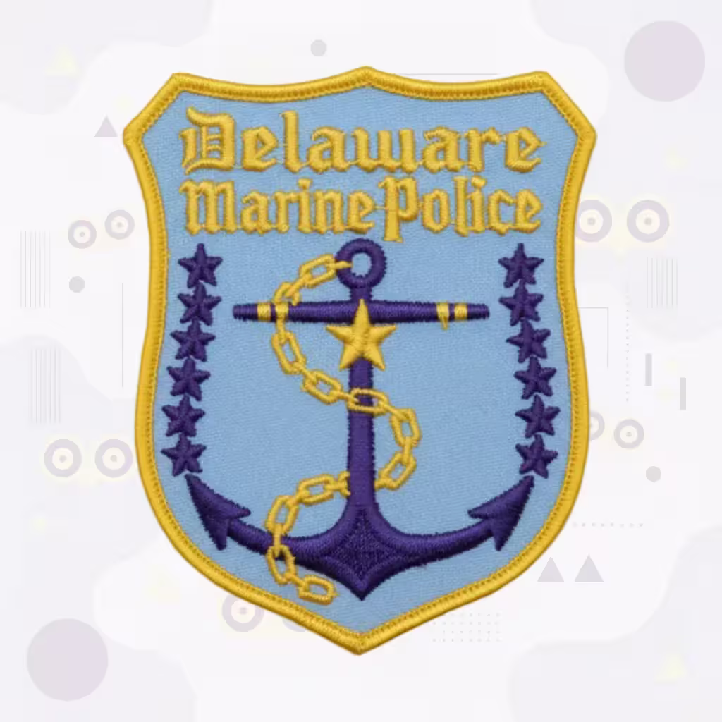 This design represents quality custom embroidery honoring Delaware’s marine law enforcement tradition and coastal heritage, ideal for marine unit uniforms, ceremonial occasions, or maritime police patch collections.