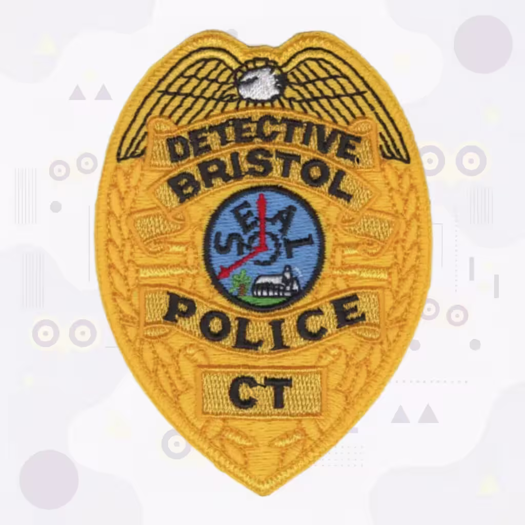This design represents premium custom embroidery honoring Bristol’s investigative division and Connecticut’s clock city heritage, ideal for detective bureau uniforms, ceremonial occasions, or Connecticut law enforcement patch collections.