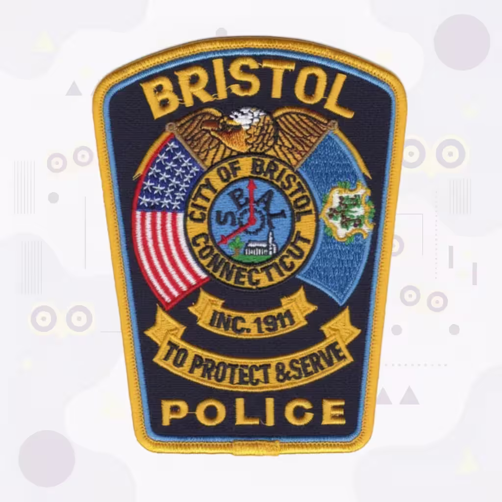 This design represents premium custom embroidery honoring Bristol’s industrial legacy and Connecticut law enforcement tradition, ideal for department uniforms, ceremonial dress, or New England police patch collections. request a quote for this style shop all custom badges design your patch online get a custom quote how to order custom police patches browse our custom embroidered patches gallery