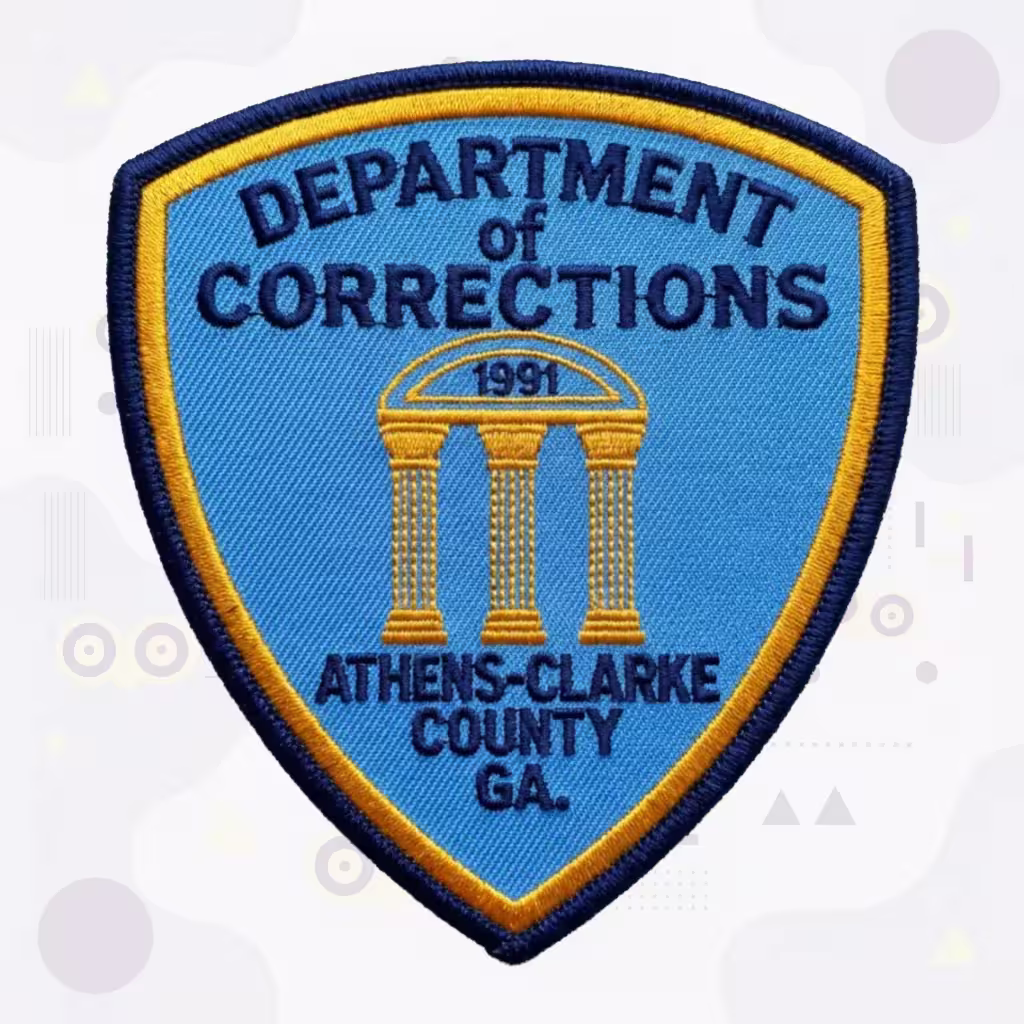 This shield corrections embroidered patch features elegant classical architecture honoring the city’s Greek namesake and university heritage, designed for the Athens-Clarke County Department of Corrections—serving Georgia’s unified government jurisdiction that merged city and county services in 1991, home to the University of Georgia.