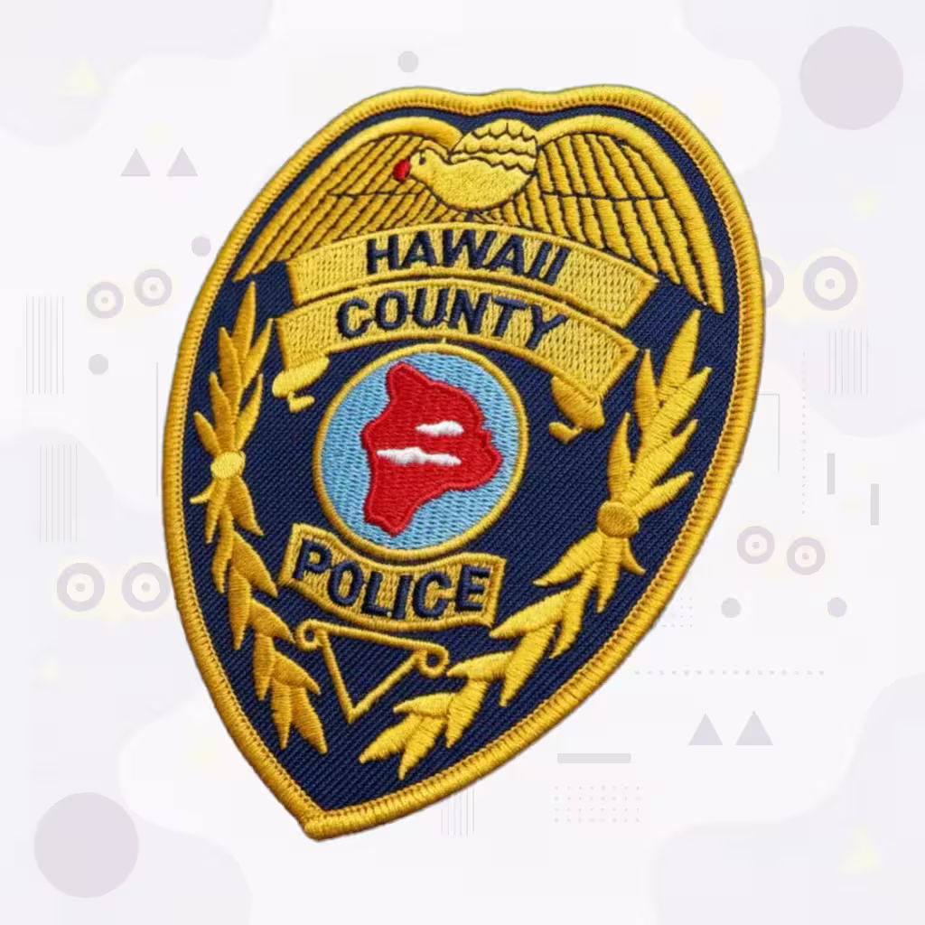 This design represents premium custom embroidery celebrating Hawaii County’s unique Big Island identity and the proud tradition of Aloha State law enforcement.