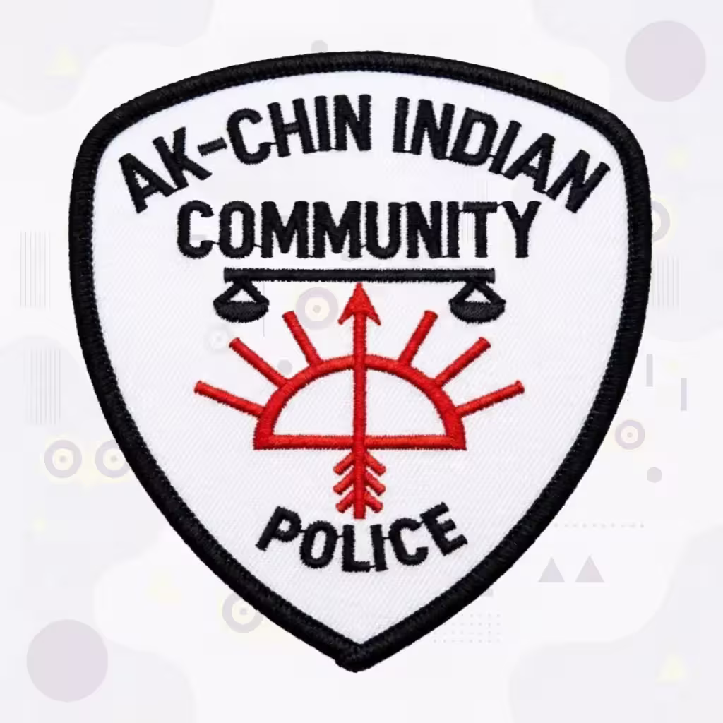 This design represents quality custom embroidery honoring the Ak-Chin Indian Community’s sovereignty and tribal law enforcement with elegant simplicity, ideal for department uniforms, ceremonial dress, or Arizona tribal police patch collections. request a quote for this style shop all custom badges design your patch online get a custom quote federal law enforcement badges guide browse our custom embroidered patches gallery