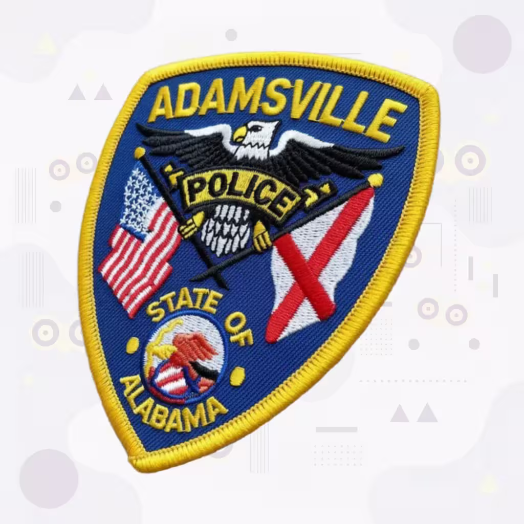 This design represents premium custom embroidery celebrating American patriotism and Alabama law enforcement pride, ideal for department uniforms, ceremonial occasions, or southeastern police patch collections. request a quote for this style shop all custom badges design your patch online get a custom quote how to order custom police patches browse our custom embroidered patches gallery