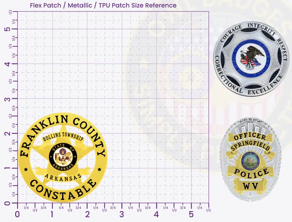 Create your police constable badge using our online platform. Round design with centered 5-point star, plus panels for jurisdiction name, rank designation, and identification numbers. Select finish and customize text placement. Includes volume discounts with no minimum orders. Each badge backed by 2-year warranty. Save designs or order instantly.