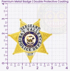 Professional 7-Point Star Badge Shield with Top Ribbon, 4 Text Panels, Ball Points, Smooth Border