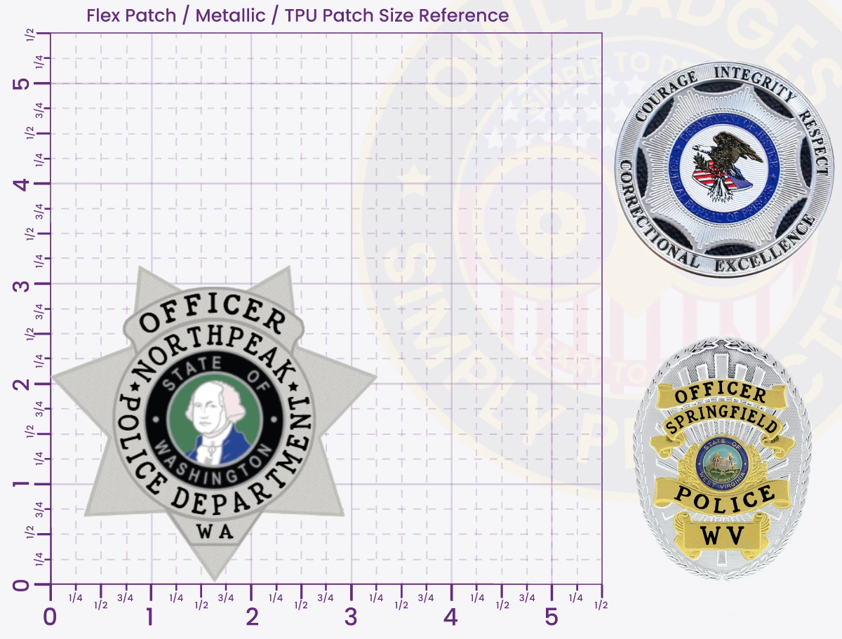 Create your department's custom police patches using our simple online designer. 7 point star with state seal or your logo and 4-panel layouts for agency names and unit details. Select from embroidered patch, PVC rubber patch, or flex patch. Start with 10 pieces and save on bulk orders. Design, save, and order when ready.