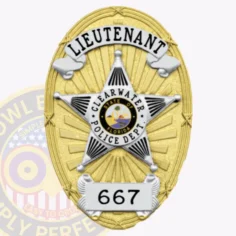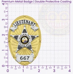 Vintage Oval Shield Badge with Background Rays, 5 Point Star Center, 4 Text Panels, Ribbon Edge