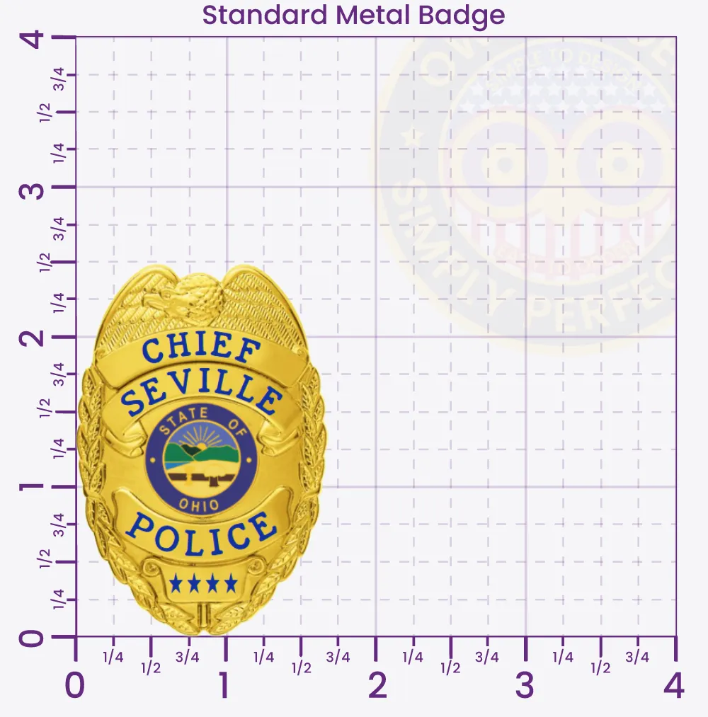 Design custom Seville Police Department Badges on the world's only online badge designer. Add your logo, design and order in minutes. Must provide a valid proof of occupation if ordering badges that refer to police. Police, Trooper, Retired, Inspector & more. *2 Year warranty on all metal badges starting June 20, 2023! Ask live chat about details. Don't see the badge you want, let our chat team know, we will add it on the website.